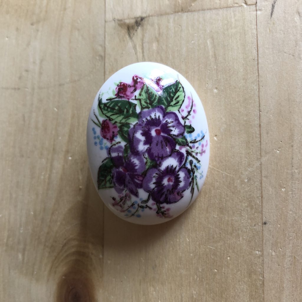 九谷焼のブローチ むらさきのお花