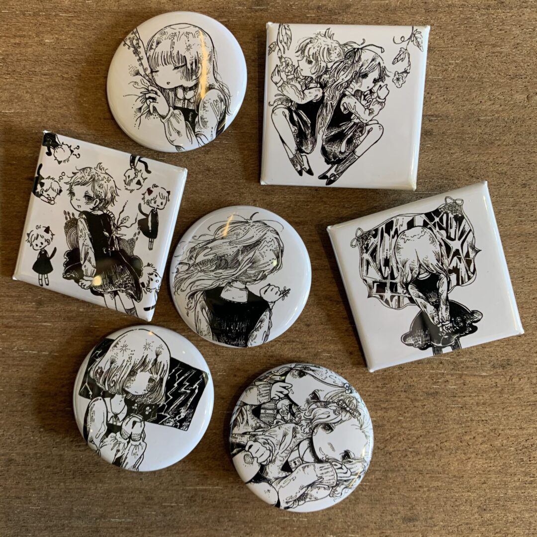 お店にはモ ルさんの「尊い系缶バッチ」のガチャガチャもあります。