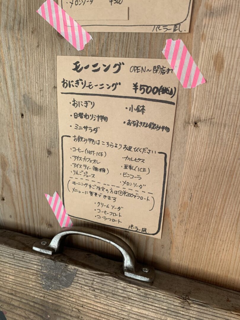 こちらオープン時のメニュー表で、もしかすると価格等変更なされてる場合もありますのでご了承くださいね。パーラー凪さんにクレーム言わないでね。わたし雑貨店にもクレーム言わないでね。怖いから。