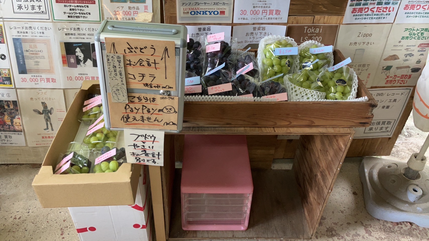 ぶどうのお支払は現金のみとなります。できるだけ小銭を用意していただけると助かります。が、どうしてもの時はわたし雑貨店に声かけてね。他店さまでは両替できません!よろしくお願いいたします!
