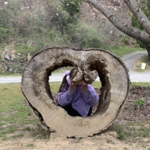 ハートの穴が開いた切り株もある。映えに寄っててちょっと恥ずかしいんだけど。